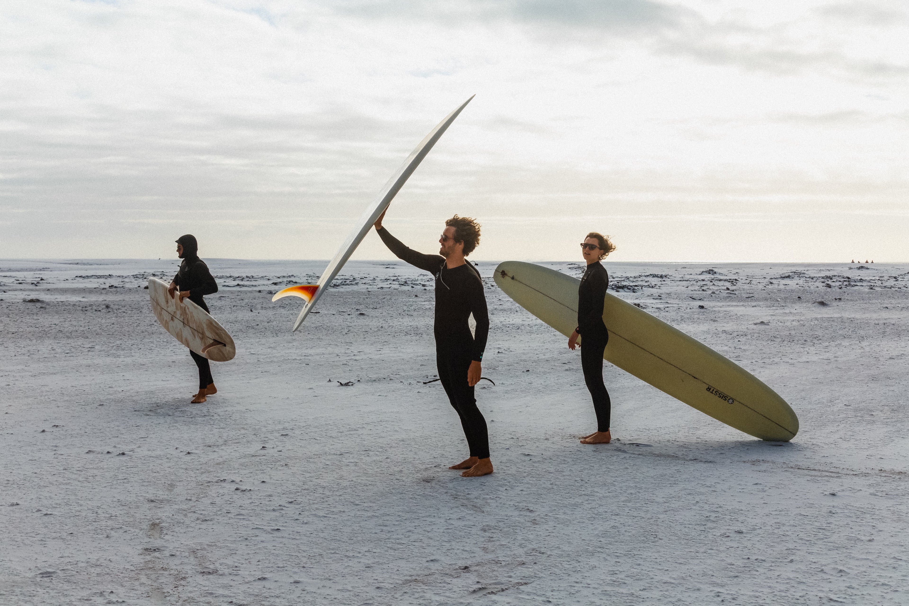 Friends first, connected through years in and around the water. Sam as a professional surfer, Oliver as a shaper and Josie balancing architecture with life between Noordhoek and the city.